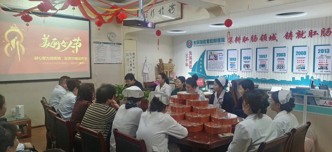 春风送暖,芳华正好。在第116个三八国际妇女节来临之际,2026年3月6日,大同马应龙肛肠医院院务会领导与全院女同志欢聚三楼会议室,隆重举办“凝心聚力战困境,医者巾帼绽芳华” 三八国际妇女节联谊会,向坚守岗位、默默奉献的全院女性职工致以节日的问候与崇高敬意。